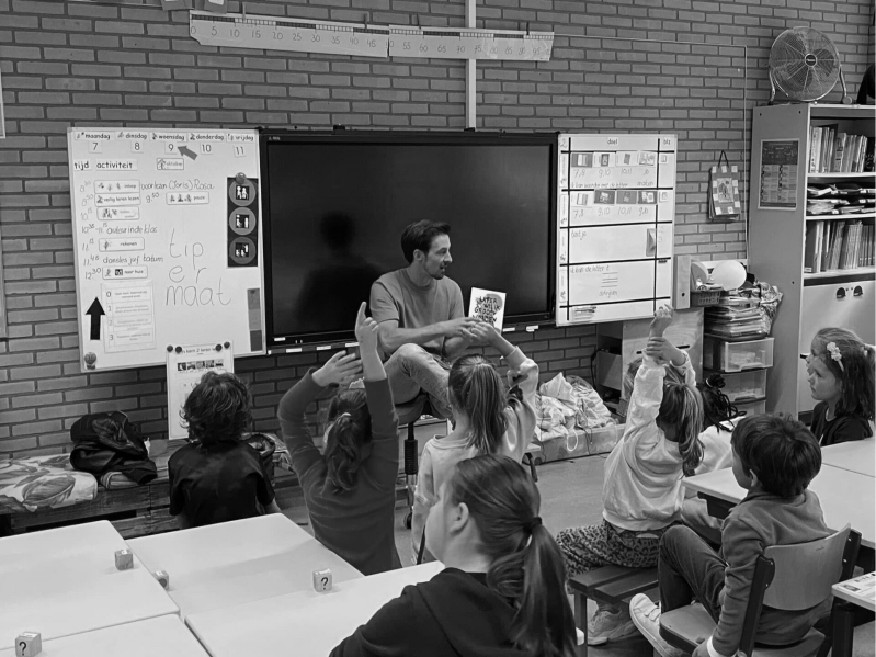 Dit doe ik om het belang van (voor)lezen te benadrukken en kinderpoezië weer op de kaart te zetten. Door middel van grappige en herkenbare verhalen probeer ik niet alleen kinderen en volwassenen te motiveren om meer te gaan lezen maar ook om kinderen op jonge leeftijd met verschillende onderwerpen in aanraking te laten komen. Per groep maak ik leuke en bijzondere opdrachten die naadloos aansluiten op het gewenste thema. Opdrachten die allemaal te maken hebben met taal waarbij vaak samengewerkt moet worden. Daarnaast vertel ik graag over het schrijversvak en beantwoord ik uiteraard zoveel mogelijk vragen. Boekingen hiervoor gaan via de Schrijverscentrale en zijn ook mogelijk buiten de Kinderboekenweek en de Nationale Voorleesdagen om.